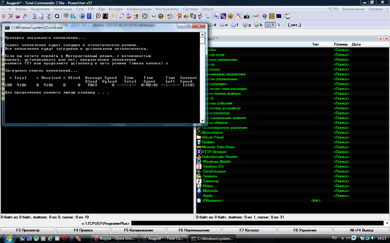 Чистая установка без сохранения настроек программ и данных от предыдущей сборки (рекомендуется) 0. Запускаем "ProgrammPlus/Plus/Отменить сделанные изменения.bat" из вашего, работающего, Total Commander 1. Удаляем папку ProgrammPlus из вашего тотала (предварительно закрыв программы из дополнительного пака) 2. Устанавливаем новый пак.